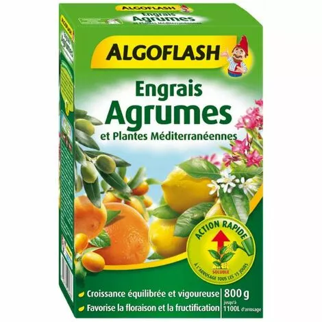 Description détaillée du produit: Produit: Engrais agrumes et plantes action rapide Composition: NPK 14.7.14 – 3% MgO avec oligo-éléments. Conditionnement: 800 grammes Marque: Algoflash
