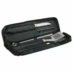 Ce kit complet d’ustensiles pour barbecue est composé d’un couteau, d’une pince, d’une spatule, d’une fourchette et de 6 brochettes.
